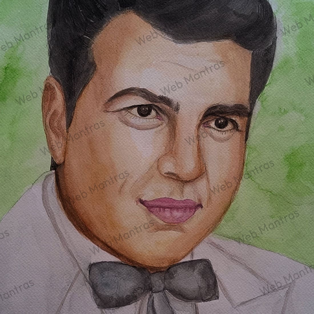 Capturing the timeless charm of Bollywood legend Dharmendra, this excellent watercolor painting on textured sheet beautifully portrays the iconic actor in a captivating and artistic way. The textured sheet adds depth and dimension to the painting, and the overall effect is one of richness and complexity.