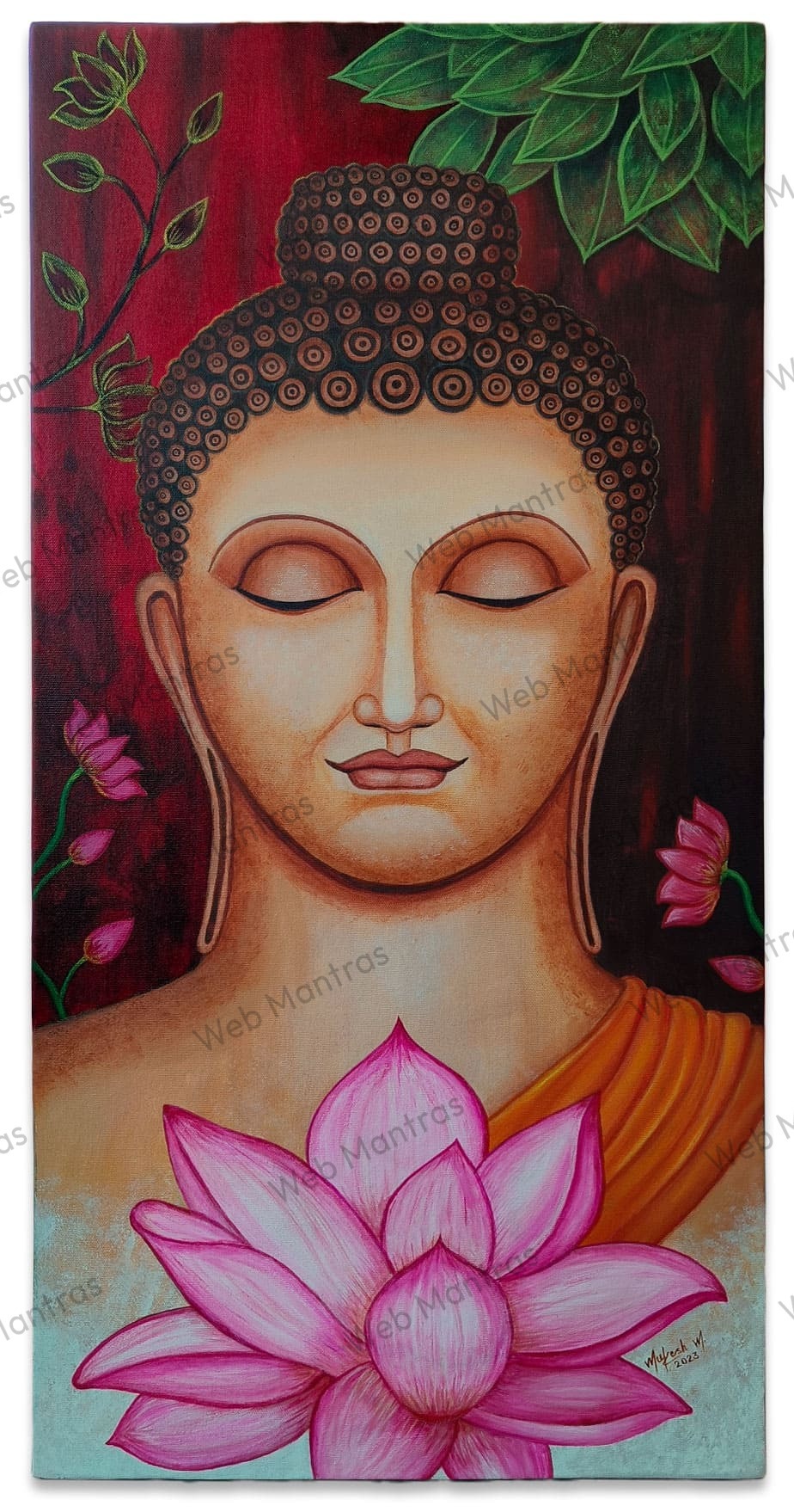Discover peace and wisdom in this beautiful acrylic painting of Lord Buddha on canvas. His serene face invites you to a world of calm and deep meditation. The gentle colors and brushstrokes capture the essence of enlightenment, making it the perfect art piece to bring tranquility to any space.