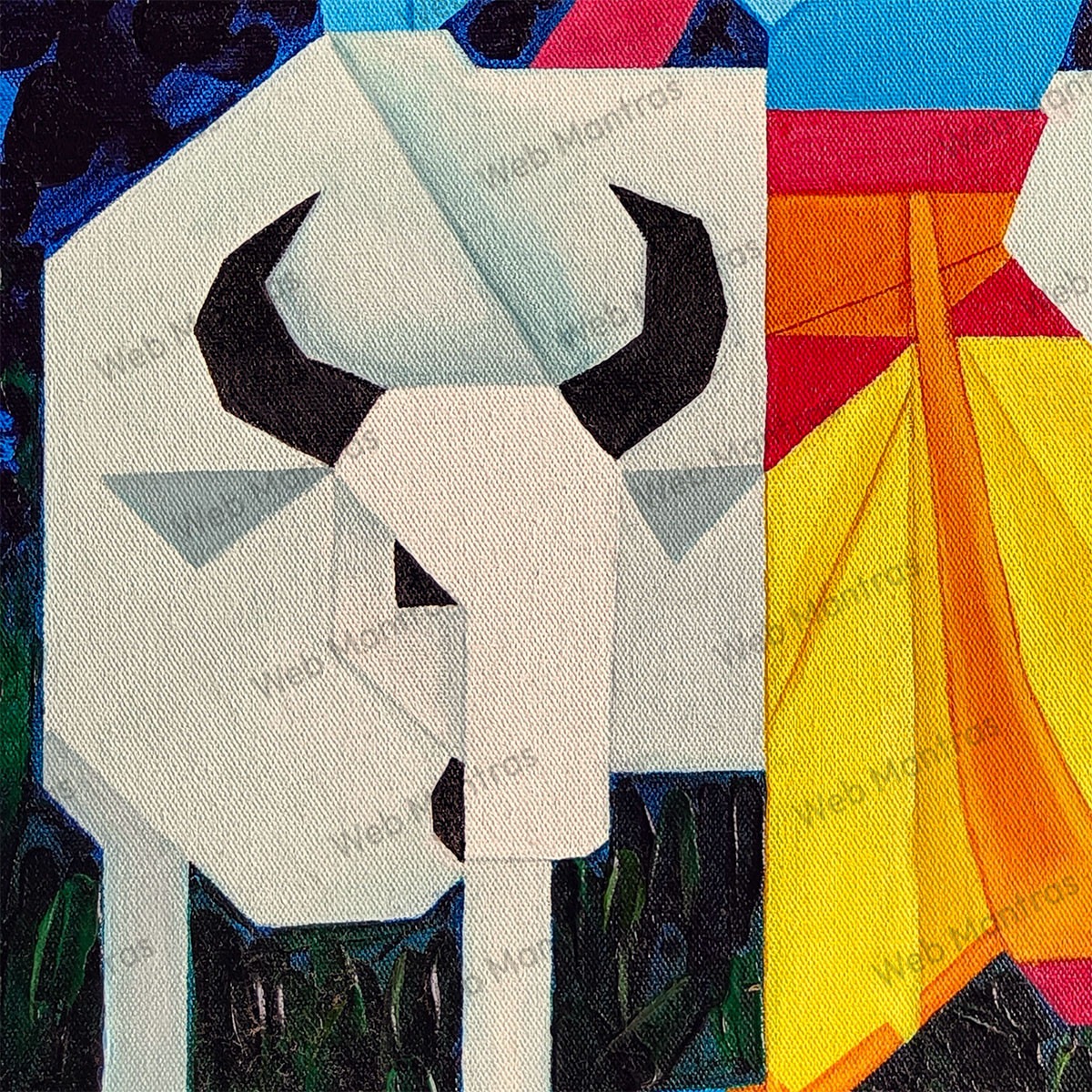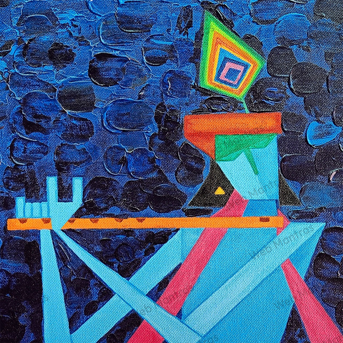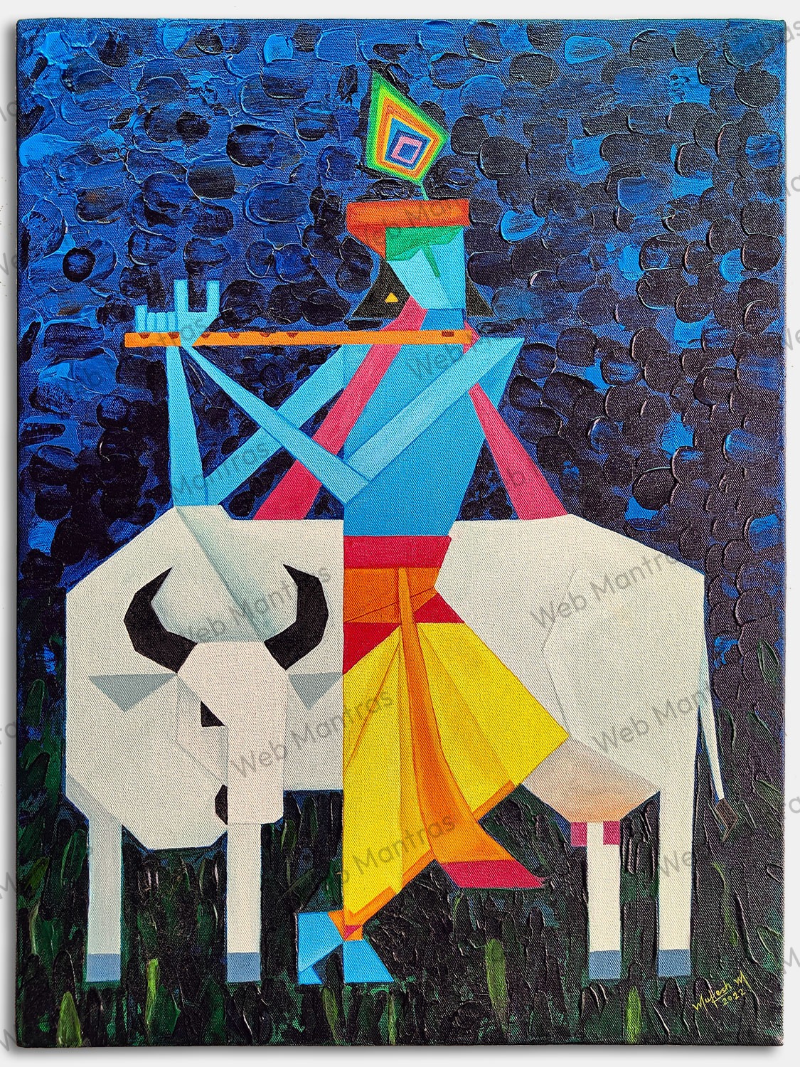 This acrylic painting depicts Lord Krishna in a modern and abstract style. The colors are bold and vibrant, and the shapes are fluid and dynamic. The painting captures the divine nature of Krishna.